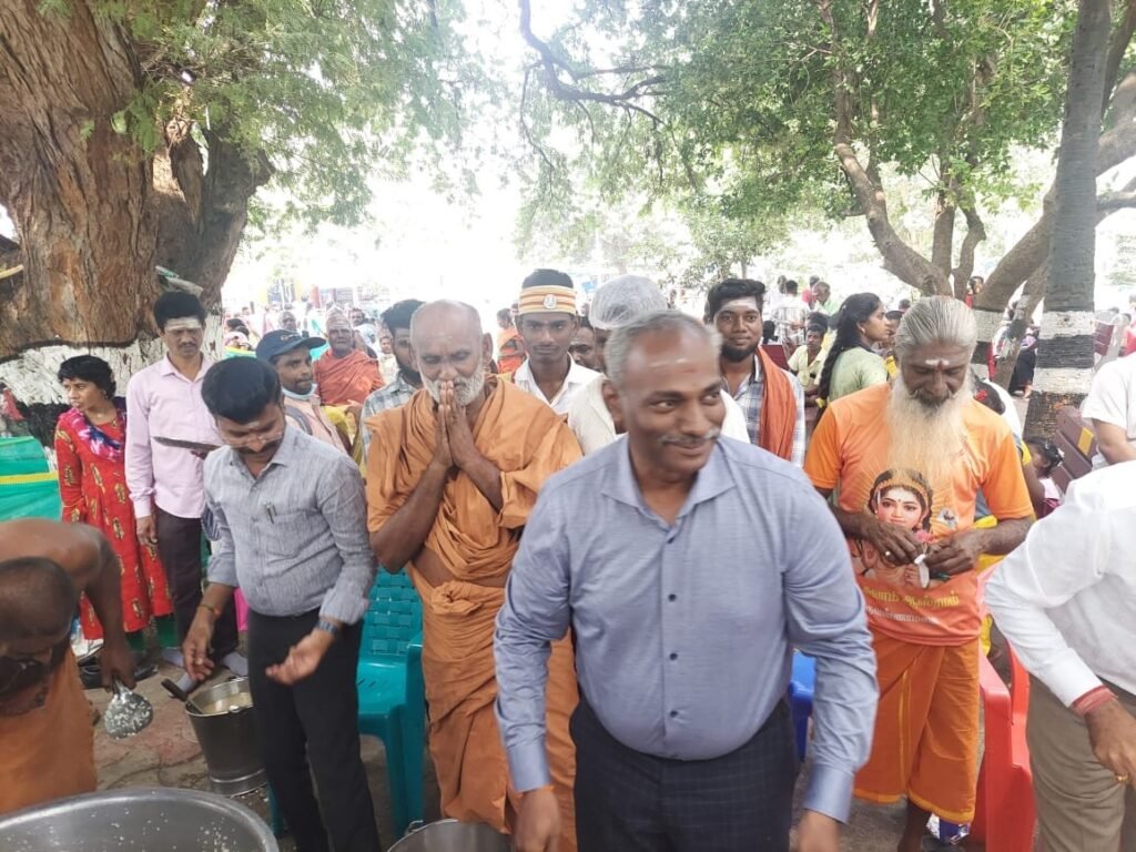 Honorable District Collector of Tiruvannamalai Mr. Baskara Pandian, IAS appreciating our Annadana Seva and expressed his happiness by serving food himself to the devotees